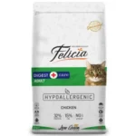 Felicia Adult Cat Food With Chicken is crafted with utmost care, using high-quality ingredients. The primary protein source is real, succulent chicken – a favorite among our discerning feline friends.