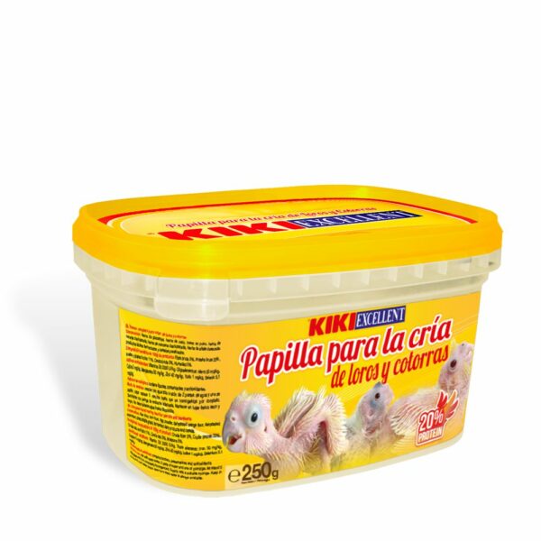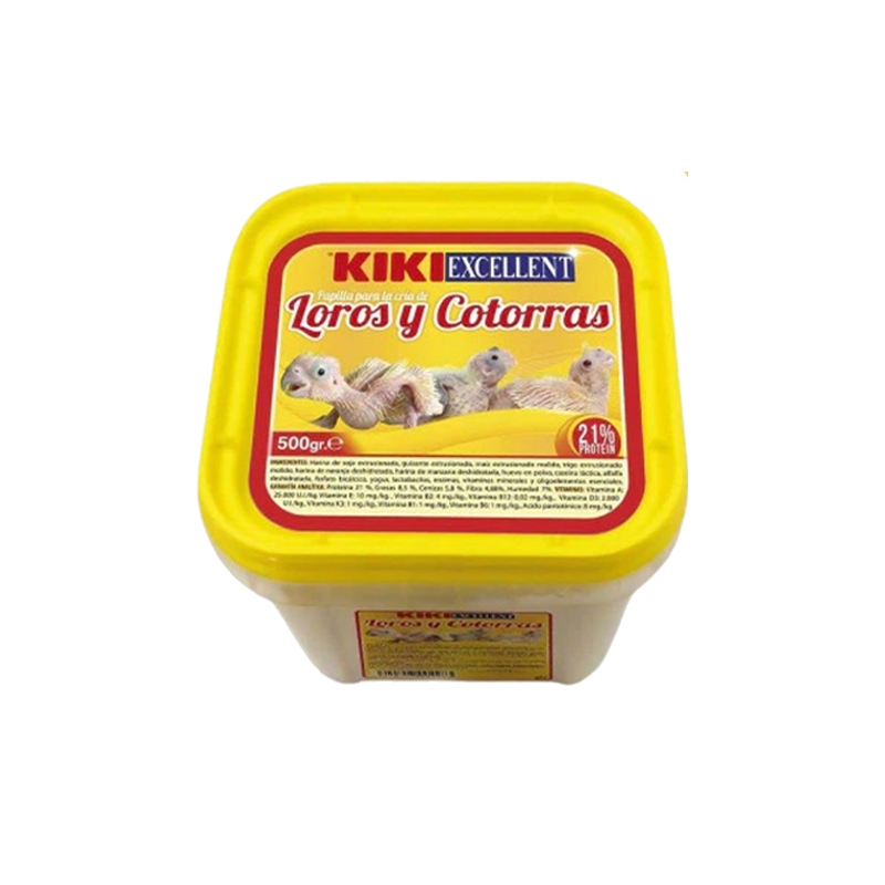 KIKI HAND-REARING FOOD FOR PARROT/PARAKEET is a meal that stands out for its high protein content (21%) and its fantastic flavor. These characteristics make this porridge for parrots, Agapornis, Parakeets and Nifas the ideal food for young of these exotic birds. In addition to being very nutritious, Kiki Excellent porridge is very easy to prepare because it only requires adding boiled water. It is advisable to prepare a small amount of each shot to avoid spoiling the food.