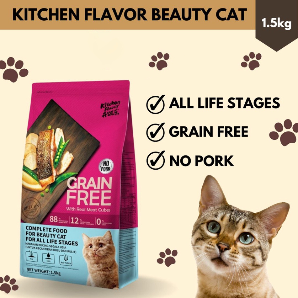 Kitchen Flavor Grain Free Cat Food With Real Meat Cubes For Beauty Cat For All Life Stages 1.5kg